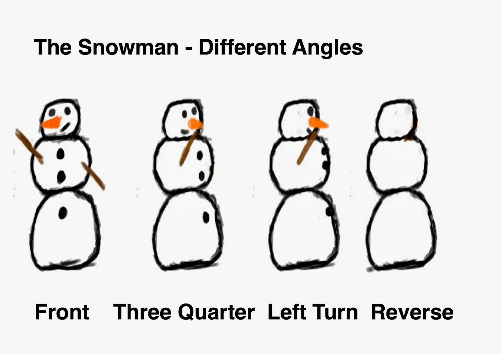 I designed the snowman in different positions turned so that people can understand the snowman in a more narrative context.